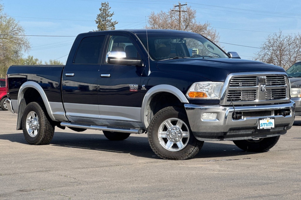Local Trade In, 10 Speakers, 115V Auxiliary Power Outlet, 17" x 8" Aluminum Wheels, 3.73 Rear Axle Ratio, 4-Wheel Disc Brakes, ABS brakes, Air Conditioning, Alloy wheels, AM/FM radio: SIRIUS, Audio memory, Auto-dimming Rear-View mirror, Automatic temperature control, Bumpers: chrome, CD player, Center Hub, Compass, Driver door bin, Driver vanity mirror, Dual front impact airbags, Dual front side impact airbags, DVD-Audio, Electronic Stability Control, Exterior Parking Camera Rear, Front anti-roll bar, Front Center Armrest w/Storage, Front dual zone A/C, Front fog lights, Front reading lights, Fully automatic headlights, Garage door transmitter, Heated door mirrors, Heated Front Seats, Heated front seats, Heated steering wheel, Illuminated entry, Leather steering wheel, Leather Trim 40/20/40 Bench Seat, Memory seat, Navigation System, Occupant sensing airbag, Outside temperature display, Overhead airbag, Overhead console, Panic alarm, Passenger door bin, Passenger vanity mirror, Power 10-Way Memory Driver & 6-Way Passenger Seats, Power Adjustable Pedals w/Memory, Power door mirrors, Power driver seat, Power Lumbar Adjust, Power passenger seat, Power steering, Power Sunroof, Power windows, Protection Group, Quick Order Package 2FH Laramie, Radio data system, Radio: Uconnect 730N CD/DVD/MP3/HDD/NAV, Rear 60/40 Split Folding Seat, Rear seat center armrest, Rear step bumper, Remote keyless entry, Remote Start System, Security system, Speed control, Split folding rear seat, Steering wheel mounted audio controls, Tachometer, Tilt steering wheel, Traction control, Trip computer, Turn signal indicator mirrors, Variably intermittent wipers, Vendor Painted Cargo Box Tracking, Voltmeter. Thanks for Choosing Smith Auto of Weiser Idaho! Your local dealership.